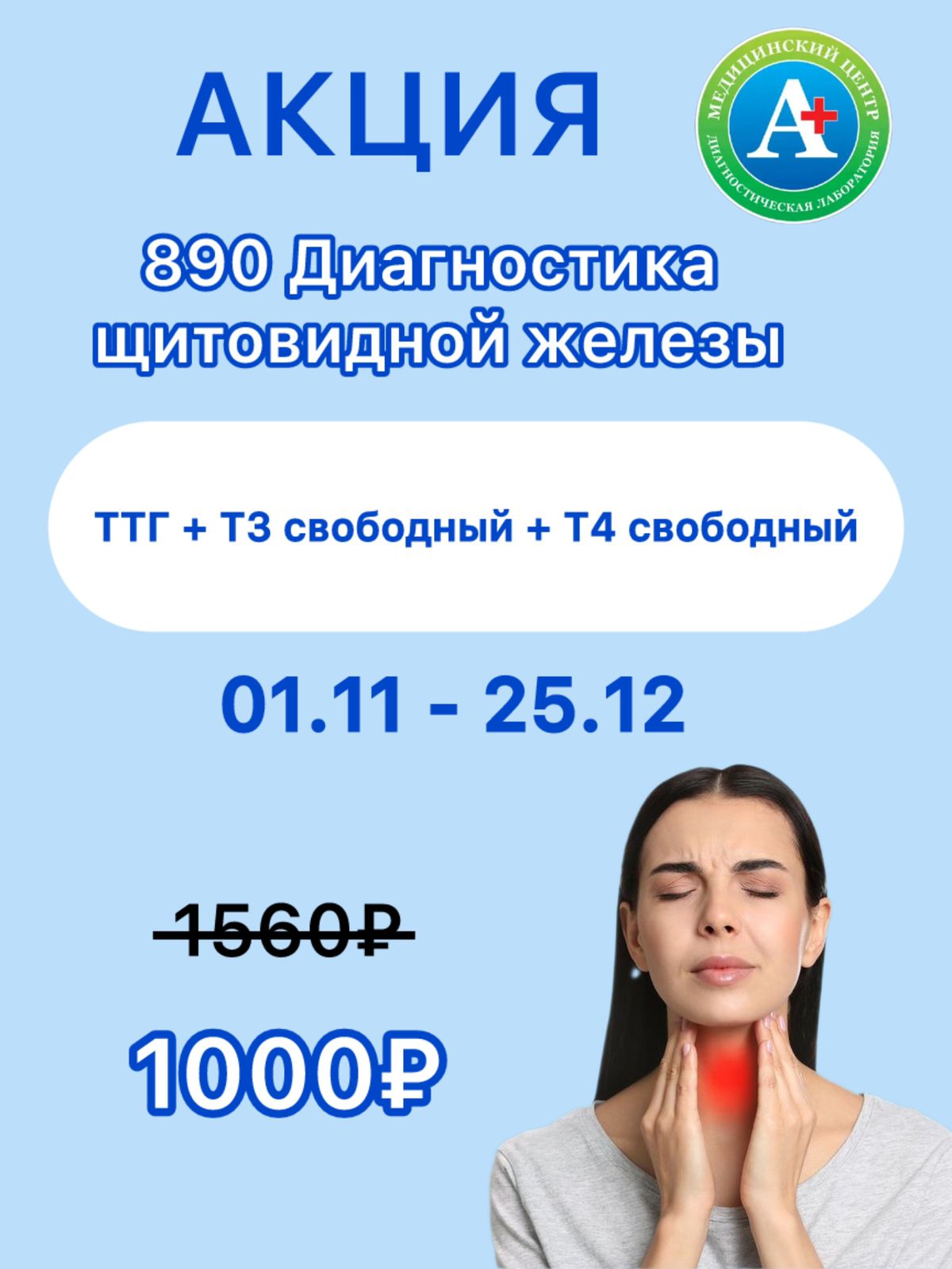 Акция: "Диагностика щитовидной железы — забота о вашем здоровье!" Щитовидная железа играет ключевую роль в обмене веществ, энергии и общем самочувствии. Проблемы с щитовидной железой могут проявляться усталостью, изменениями настроения, нарушениями веса и другими симптомами. Не откладывайте лечение — ранняя диагностика поможет выявить любые отклонения и начать лечение на ранней стадии. Почему выбирают нас?