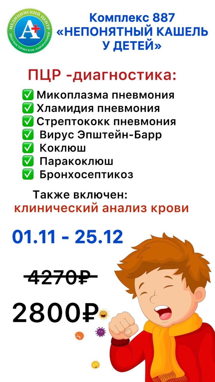 Акция: "Непонятный кашель у детей — забота и здоровье вашего ребенка!" Не знаете, что вызывает кашель у вашего ребенка? Не откладывайте! Только сейчас — специальное предложение на комплексное обследование с ПЦР-диагностикой. Быстрое и точное определение причины кашля поможет вам обеспечить безопасность и комфорт вашему ребенку. Почему выбирают нас?